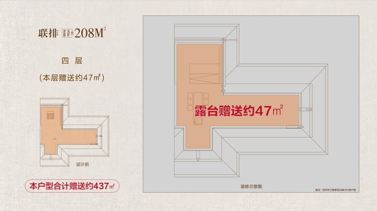 高附贈:地下室面積約108㎡,約 5.5 米挑高,可隔成兩層,打造影音室、健身房、酒窖等多元功能區(qū);一層餐客廳挑空,可拓展約43㎡贈送空間;二層、三層配備景觀露臺,陽臺半贈送;四層星空露臺全贈送,解鎖生活多重想象。
