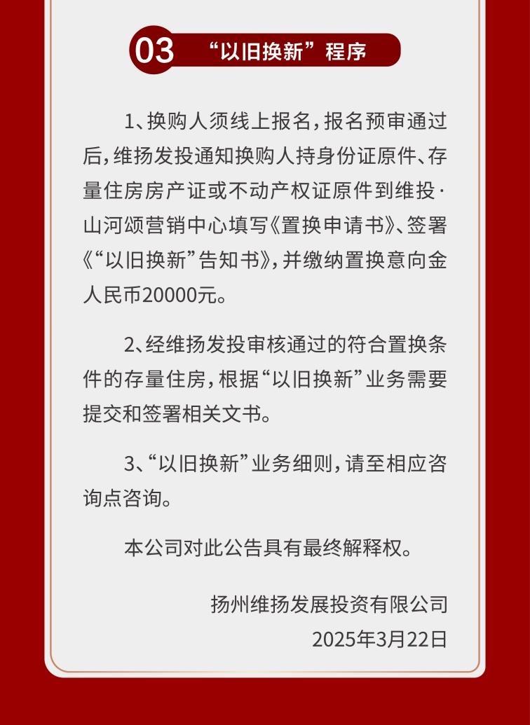 隨著培土奠基儀式的完成,維投·山河序正式駛?cè)虢ㄔO(shè)快車道,項(xiàng)目即將開售。結(jié)合維揚(yáng)發(fā)投推出的以舊換新3.0政策,多維度降低了改善門檻。項(xiàng)目以墅質(zhì)產(chǎn)品哲學(xué),呼應(yīng)城市奮斗者對品質(zhì)人居與生活理想的雙重追求,以國企匠心為揚(yáng)州人居史鐫刻濃墨重彩的“山河序章”。