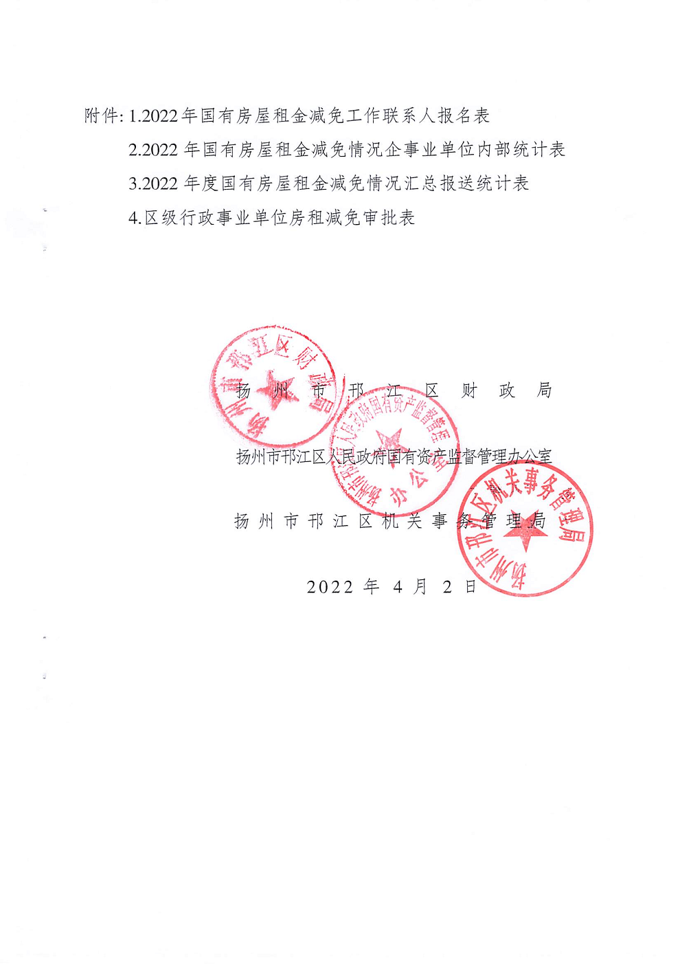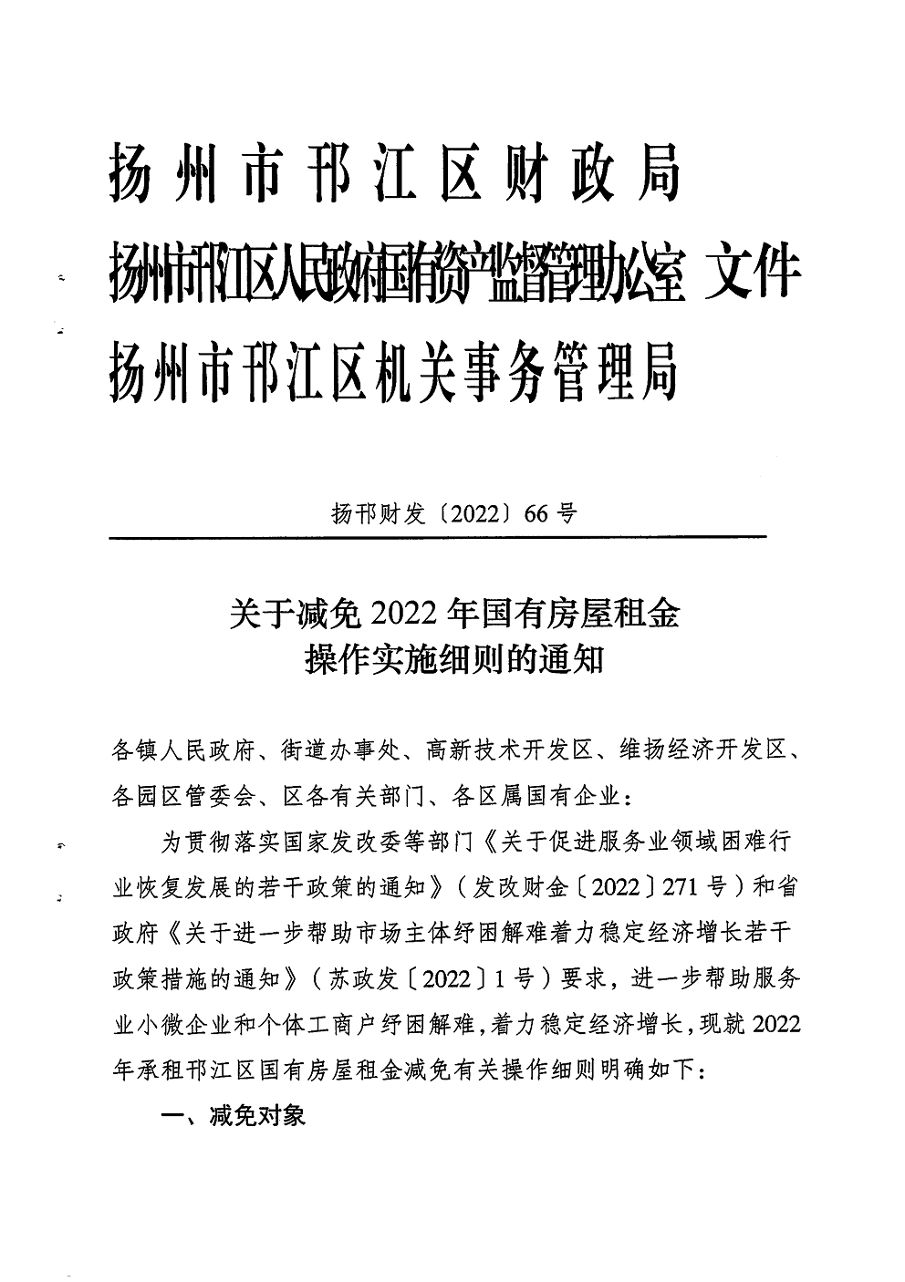關(guān)于減免2022年國(guó)有房屋租金操作實(shí)施細(xì)則的通知